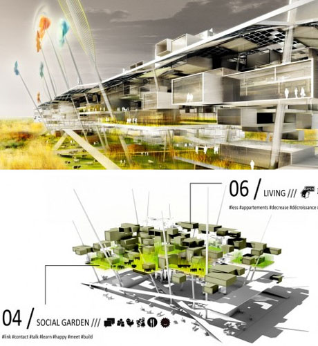 集雨摩天樓 如何讓建筑在最大程度上收集雨水?H3AR設計的集雨摩天樓可能給出答案。借助于覆蓋整個外部的水槽網,雨水將直接流入一個處理廠。處理后獲得的生活用水可用于沖馬桶、洗衣服、其他清洗工作以及澆灌植物。根據H3AR的設計,摩天樓的皮膚與屋頂上一個巨大的碗狀雨水收集設施結合在一起,在最大程度上獲取雨水。 7.法國第戎多功能生態區