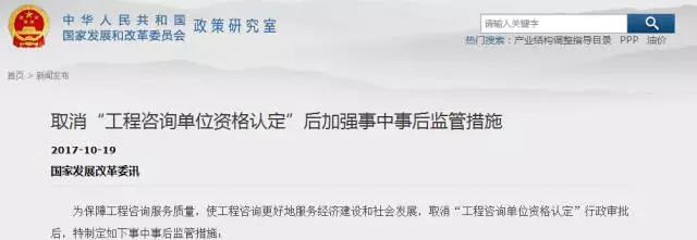 2017年10月18日,國家發改委根據《國務院關于取消一批行政許可事項的決定》(國發〔2017〕46號),正式取消了兩項行政許可事項,分別為:(1)工程咨詢單位資格認定;(2)跨省發電、供電計劃和省級發電、供電計劃備案核準。