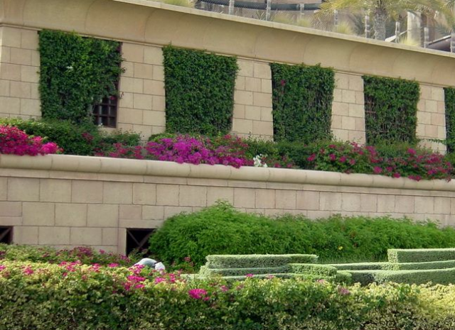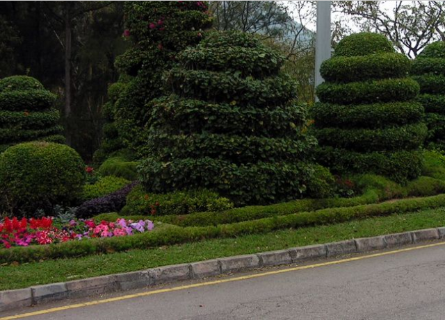 分隔帶綠化的主要功能是按不同的行駛方向分隔車道,防止車燈眩光干擾,減輕對(duì)開車輛接近時(shí)司機(jī)心理上的危險(xiǎn)感,或因行車而引起的精神疲勞,引導(dǎo)視線和改善環(huán)境。中央分隔帶的設(shè)計(jì),在增強(qiáng)交通功能并能夠持久穩(wěn)定方面,要求考慮通過(guò)常綠灌木實(shí)現(xiàn),選擇時(shí)應(yīng)重點(diǎn)考慮選用耐尾氣污染、生長(zhǎng)健壯、慢生和耐修剪的灌木品種,一般可選用石楠、金葉女貞、紅花繼木、蜀檜柏、冬青等。在一些地段的分隔帶設(shè)計(jì)中,還可以組團(tuán)式規(guī)則種植棕櫚、櫻花、西府海棠等特色小喬木來(lái)體現(xiàn)植物景觀的差異性。