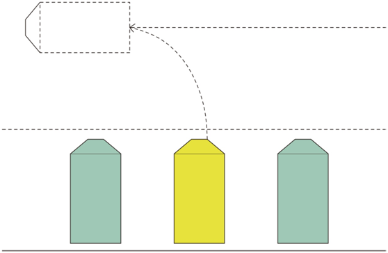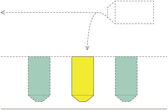此種方式停車較慢,發車迅速,平均占地面積少,是常用的停發車方式如圖。