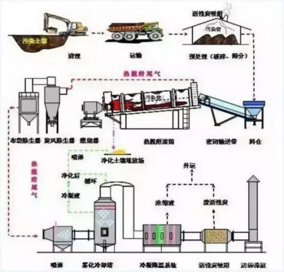 土壤修復(fù)技術(shù)中的熱脫附技術(shù)是指通過(guò)直接或間接加熱,將土壤中的有機(jī)污染物加熱到沸點(diǎn)以上,以使有機(jī)污染物從污染介質(zhì)上得以揮發(fā),進(jìn)入氣體處理系統(tǒng)的過(guò)程。熱脫附技術(shù)優(yōu)點(diǎn):無(wú)復(fù)雜工藝;成本相對(duì)經(jīng)濟(jì);不造成二次污染。