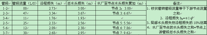 ①沿程水頭損失hy=αl q2, 式中α為管道比阻,與管徑及管內(nèi)壁粗糙系數(shù)有關(guān),l為管道長(zhǎng)度,q為流量;