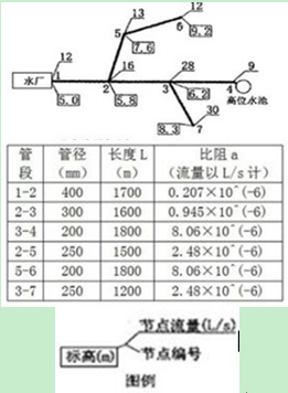 例1: 現(xiàn)以下圖所示給水管網(wǎng)為例,計(jì)算說(shuō)明。