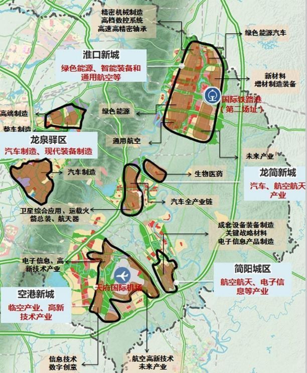因此,東進區域將發揮空港帶動作用和區域優勢,集聚高端和新興產業。發揮天府國際機場的強大帶動能力,集聚高端臨空產業。