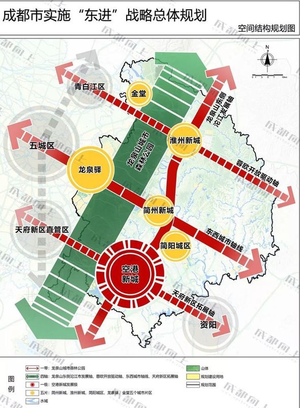日前,成都規劃局官網公布了《<成都市實施“東進”戰略總體規劃(2017-2035年)>公眾意見征集稿》,從定位、目標、產業、生態等各方面規劃,詳細闡釋了 “ 東進 ” 到底該怎么 “ 進 ” 。