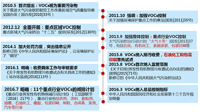 從我國的大氣污染治理歷程來看,VOCs問題也是近幾年才得到廣泛關注。因此,不論是從VOCs的治理技術,相關標準,還是監測技術來說,我國現階段的各項工作還處于剛剛起步階段,各項體系還不夠完善。
