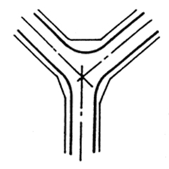 是道路盡端與別條道路相交的主要形式;一般用于次要道路與主要干道相交的交叉處,應優先保證主要干道的交通通暢。