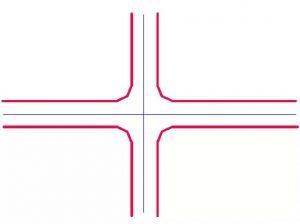 主要公路與次要公路(為縣鄉公路或三、四級公路)且轉彎交通量大的十字交叉,可采用該型式。