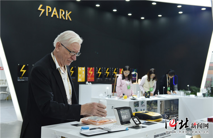 2018年10月17日,星火獎展區,星火設計獎主席古彼特正在仔細對照展品和標簽。記者趙海江、田明攝影報道