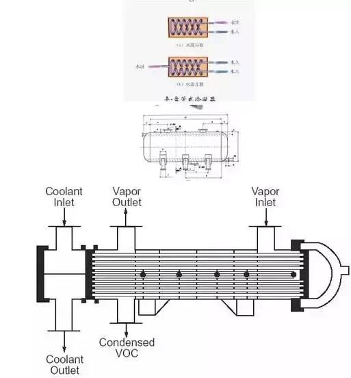原理:冷凝將廢氣降溫至VOCs成份之露點以下,使之凝結為液態后加以回收之方法。