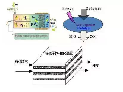 原理:等離子體場富集大量活性物種,如離子、電子、激發態的原子、分子及自由基等;活性物種將污染物分子離解小分子物質。