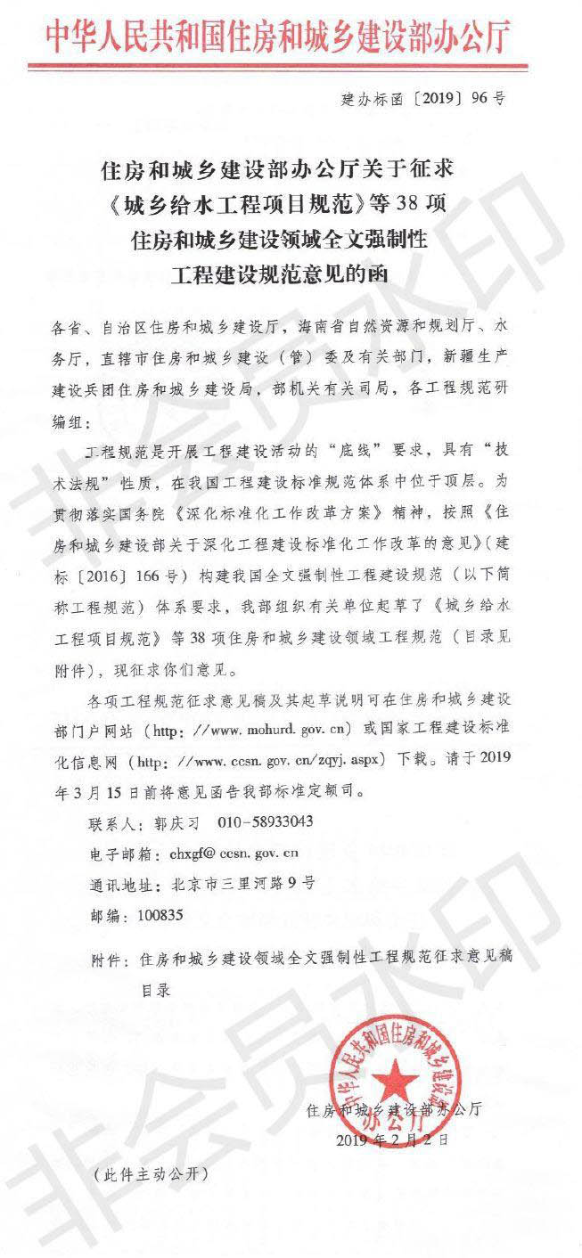 日前,住房和城鄉(xiāng)建設(shè)部辦公廳發(fā)布《關(guān)于征求<城鄉(xiāng)給水工程項(xiàng)目規(guī)范>等38項(xiàng)住房和城鄉(xiāng)建設(shè)領(lǐng)域全文強(qiáng)制性工程建設(shè)規(guī)范意見(jiàn)的函》,公布了《建筑和市政工程防水通用規(guī)范》征求意見(jiàn)稿。