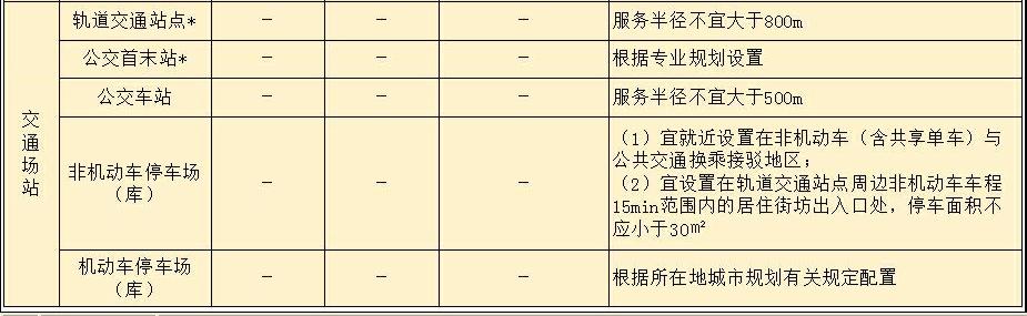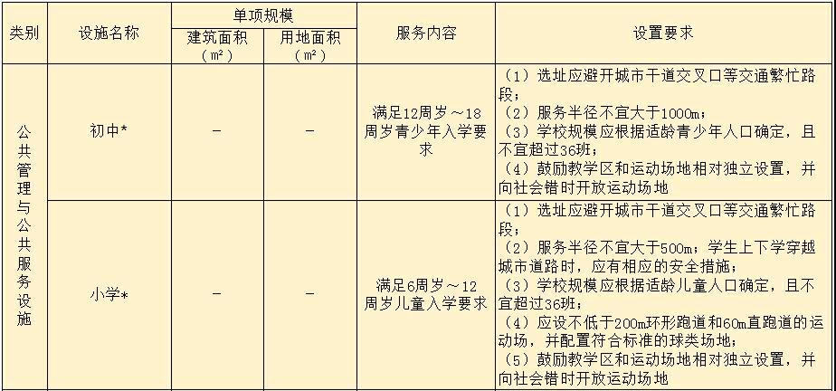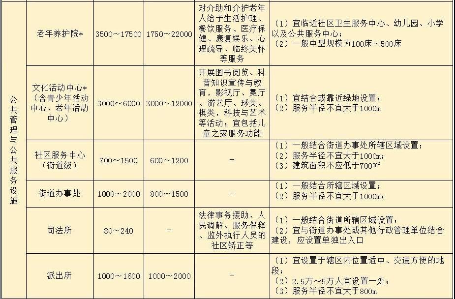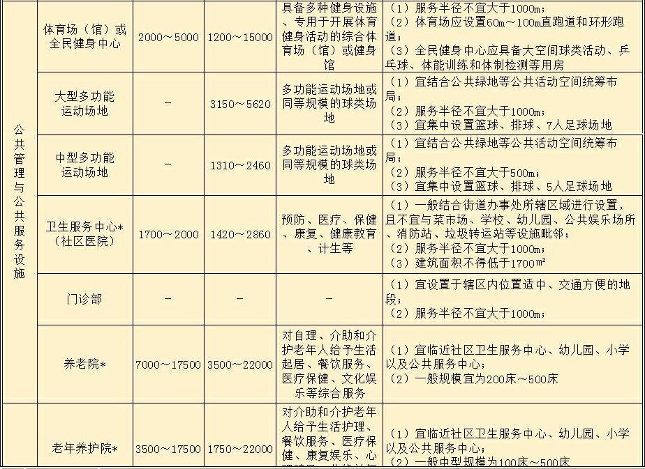注:加*的配套設(shè)施,其建筑面積與用地面積規(guī)模應(yīng)滿足國(guó)家相關(guān)規(guī)劃標(biāo)準(zhǔn)有關(guān)規(guī)定。