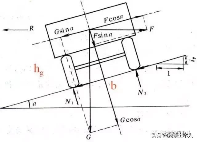 采用橫向力系數(shù)來衡量穩(wěn)定性程度,其意義為單位車重的橫向力,即(注:u越大,行車越不穩(wěn)定)