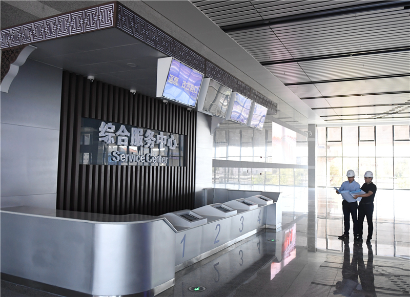 9月18日,工作人員對京雄城際北京大興站內(nèi)的綜合服務(wù)中心進(jìn)行驗收檢查。