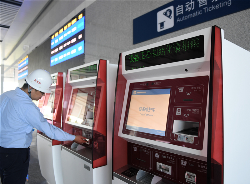 9月18日,工作人員對京雄城際北京大興站內(nèi)的自動售票機進(jìn)行檢查。