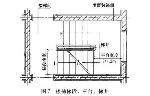 新規范:6.8.2 當一側有扶手時,梯段凈寬應為墻體裝飾面至扶手中心線的水平距離,當雙側有扶手時,梯段凈寬應為兩側扶手中心線之間的水平距離。當有凸出物時,梯段凈寬應從凸出物表面算起。