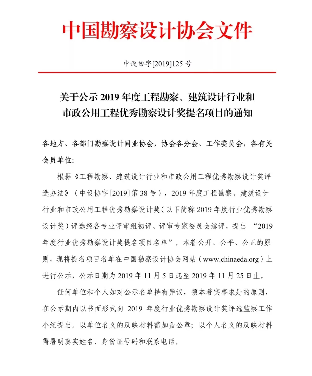 2019年度行業優秀勘察設計獎提名項目公布!