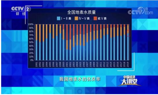我們先來看看全國的地表水的環(huán)境質(zhì)量。2019年我國地表水的優(yōu)良率已經(jīng)達(dá)到了74.9%,這個(gè)數(shù)字比上一年提高了3.9%。