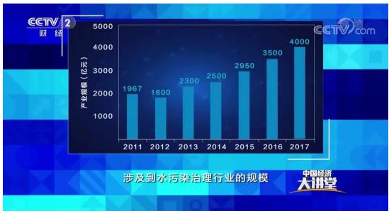 這張圖顯示出在2015年以后涉及到水污染治理行業(yè)的規(guī)模逐漸地增加,2014年時(shí)是2500億元,2015年則變成2950億元,2017年達(dá)到4000億。從2500億元到4000億元是跨越式的發(fā)展,按照現(xiàn)在的估計(jì)如果完成“水十條”的話會帶動社會投資4.7萬億元,而能夠帶動環(huán)保產(chǎn)業(yè)增長是1.9萬億元,這個(gè)數(shù)字表明環(huán)境治理它不是一個(gè)僅花錢不掙錢的事情,它還能帶動社會經(jīng)濟(jì)快速和高質(zhì)量發(fā)展。