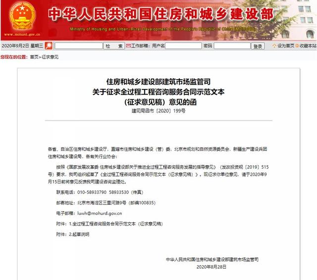 重磅!2020年8月28日住建部發布《全過程工程咨詢服務合同示范文本(征求意見稿)》(以下簡稱“合同示范文本”),用于指導全過程工程咨詢服務服務合同當事人的簽約行為。國家的目的是要重點支持全過程工程咨詢服務的發展。