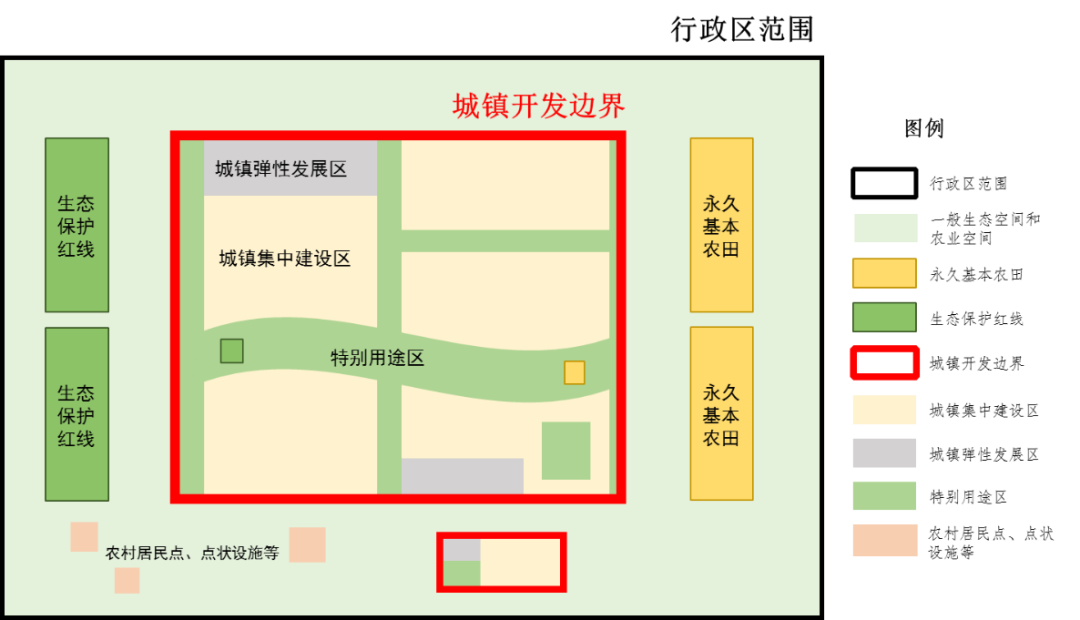 為完善城鎮功能,提升人居環境品質,保持城鎮開發邊界的完整性,根據規劃管理需劃入開發邊界內的重點地區,主要包括與城鎮關聯密切的生態涵養、休閑游憩、防護隔離、自然和歷史文化保護等地域空間。