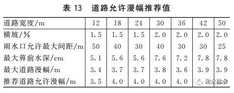 我國尚無明確的道路漫幅規定,建議有關部門盡快制定相關的標準。在相關標準未出臺前,設計人員計算時采用的道路漫幅可參考表13推薦值。