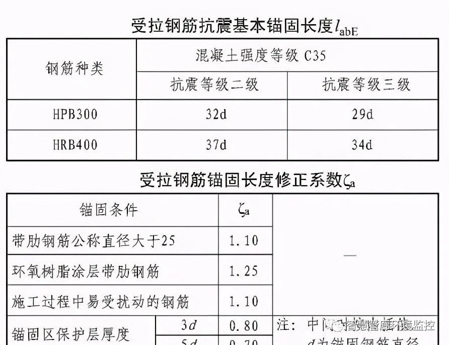 受拉鋼筋抗震綁扎搭接長度按下表: