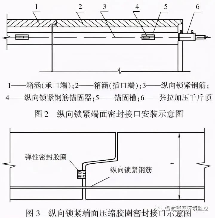 端面接口密封材料常用彈性膠條,其寬度為20×30mm、高為20mm、25mm。膠條的性能與用于混凝土管膠圈相似,為彌補箱涵構(gòu)件端面混凝土存在的氣泡或小凹坑,彈性膠條的對接表面可膠接5mm厚的遇水膨脹膠料,使其水脹性能填充氣泡和凹坑,防止接口滲水。