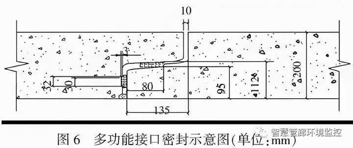 ②地下綜合管廊的設(shè)計使用年限為100 年,密封膠圈的耐老化性能成為關(guān)鍵,使用數(shù)十年后,橡膠的應(yīng)力松弛、物理性能變化、彈性對混凝土面的擠壓應(yīng)力是否還能滿足接口抗?jié)B要求等成為疑問,而多功能接口不但具有現(xiàn)時接口質(zhì)量可檢性,而且還具備接口質(zhì)量的可補性。當接口中使用的膠圈性能不能滿足接口抗?jié)B要求時,可擰開上下接口檢驗進水通道的螺帽,吹凈其中水分和雜物,接上灌漿設(shè)施,向兩個膠圈之間的空腔內(nèi)灌注防水密封膠液,形成二次柔性密封接口。