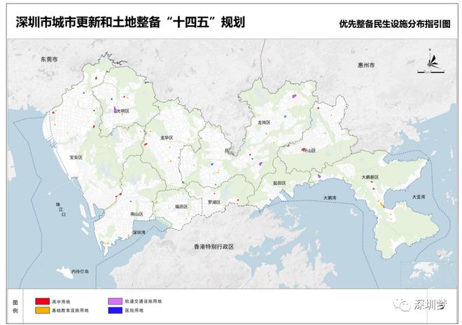 3.規(guī)劃期內(nèi)通過城市更新和土地整備完成基礎教育設施學位不少于21.3萬個,重點保障一批綜合醫(yī)院、高中等全市緊缺的大型公共服務設施用地供應,彌補民生短板。落實水質(zhì)凈化廠、電力、環(huán)境生態(tài)園等市政設施用地,提升市政支撐水平。加快推動國鐵、城際鐵路、軌道及相關場站、新(擴)建主干路等用地整備,促進交通設施完善。