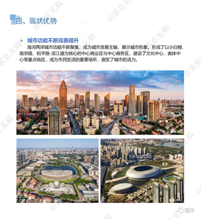 通過研讀,我們看到,天津要實現(xiàn)的“三更”目標(biāo):其一,更靚麗的中央活力區(qū)。其二,更生態(tài)宜居的一環(huán)十一園地區(qū)。其三,更美好的城市近郊區(qū)。推動津城高質(zhì)量發(fā)展。