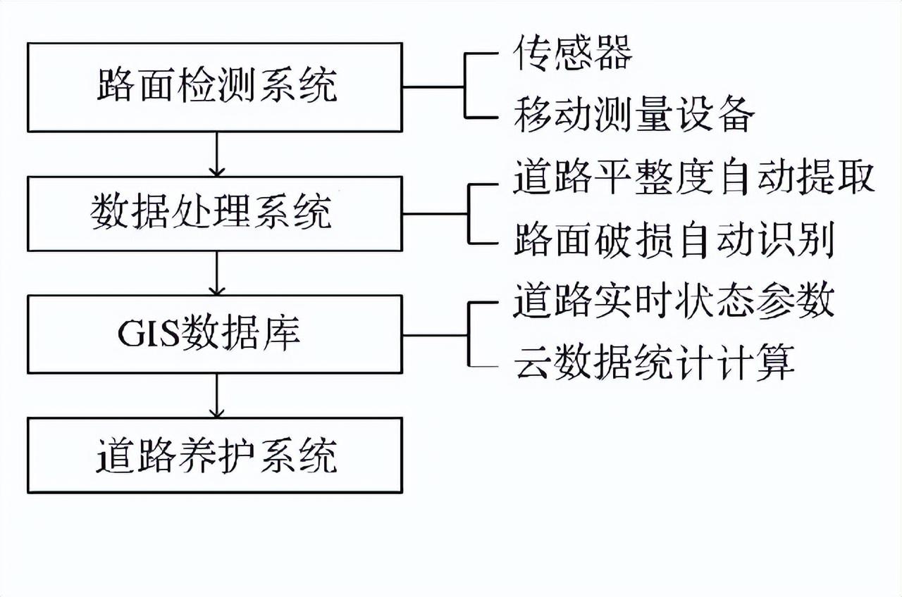 利用傳感器和移動測量系統建立實景三維GIS系統,結合竣工模型對道路的每一個區段、設備、構筑物進行實時監測,及時調取數據參數,導入路網實時數據庫和歷史數據庫,建立道路動態養護平臺,有利于應急搶險的科學快速決策,實現道路工程全生命周期內模型、數據的統一存儲、分析。架構圖見圖3。