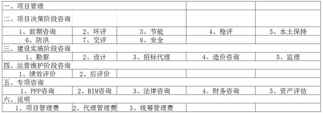 本文提供的全咨取費參考標準包含以下內容: