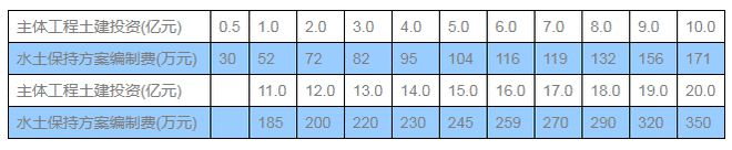 水土保持咨詢服務取費可參考《關于開發建設項目水土保持咨詢服務費用計列的指導意見》(保監〔2005〕22號),其中可行性研究階段的開發建設項目水土保持方案編制費可參考下表標準計列。