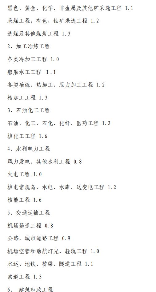 工程復雜程度調整系數:0.8~1.2(工程復雜程度具體調整系數由工程咨詢機構與委托單位根據各類工程情況協商確定)。