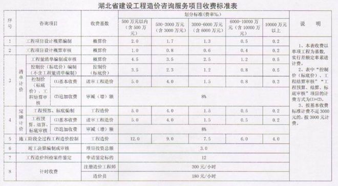 湖北省3000萬元以下建設項目估算投資額分檔收費標準