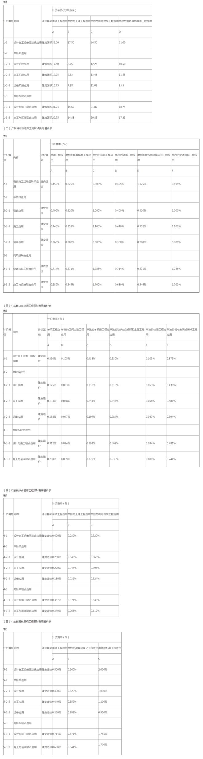 (2)工業與民用建筑工程,當建筑面積少于2萬平方米時,按2萬平方米作為計價基礎計算建筑信息模型(BIM)技術應用費用;市政道路工程、軌道交通工程、地下綜合管廊工程的造價少于1億元時,按1億元作為計價基礎計算建筑信息模型(BIM)技術應用費用;園林景觀工程的造價少于1000萬元時,按1000萬元作為計價基礎計算建筑信息模型(BIM)技術應用費用。