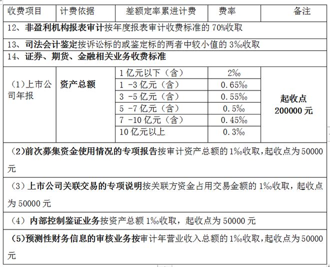 證券、期貨、金融相關評估業務、以訴訟、仲裁為目的的評估業務、以無形資產為評估對象的評估業務為特殊評估業務,收費標準可上浮40%,起收點為10000元。