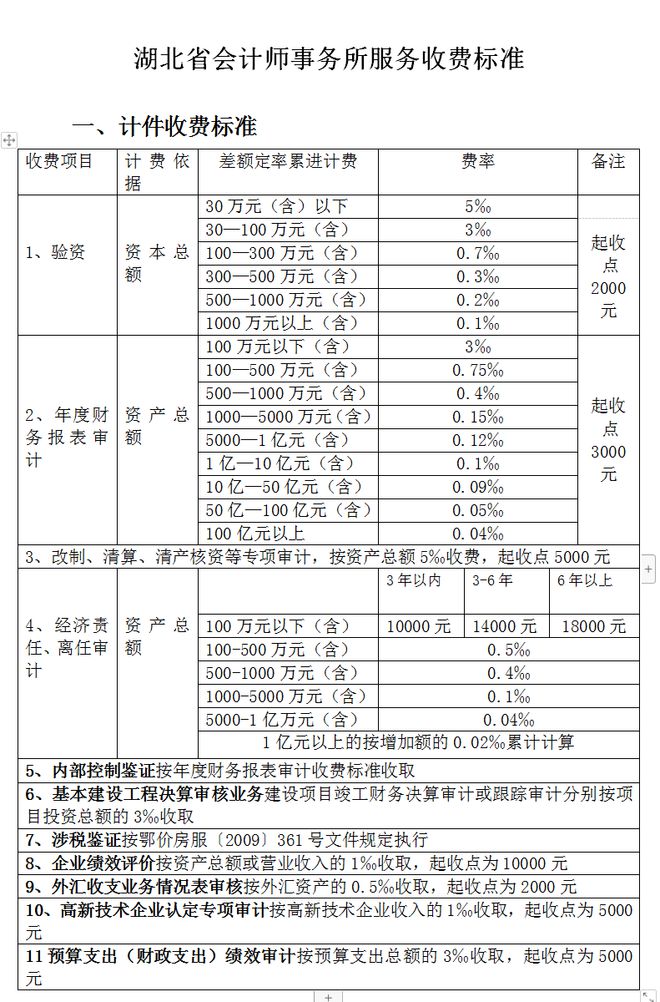 會計師事務所服務可參考地方收費標準,如湖北省地方標準——《湖北省物價局省財政廳關于印發<湖北省會計師事務所服務收費管理實施辦法>的通知》(鄂價規〔2010〕265號),具體如下: