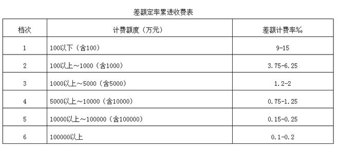 評價費用=(評價費用上限—評價費用下限)×(總投資額—投資區間下限)/(投資區間上限—投資區間下限)+評價費用下限