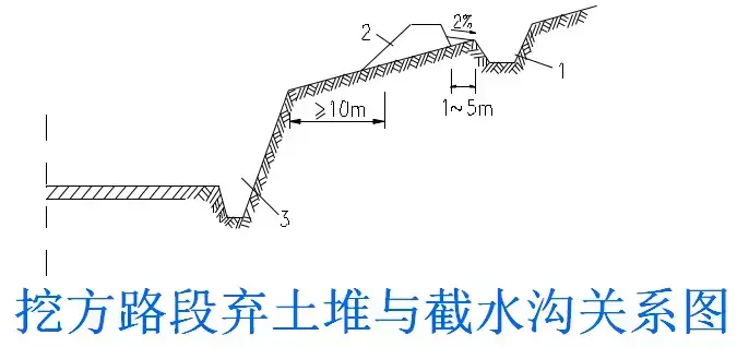 ③截水溝水流不應(yīng)引入邊溝,當(dāng)必須引入時,應(yīng)增大邊溝橫斷面,并進行保護;