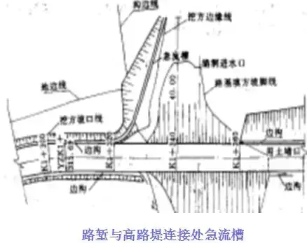 在路堤較高,邊坡坡面在未做防護而易遭受路面表面水流沖刷,或者坡面雖已采取防護措施但仍有可能受到?jīng)_刷時,應(yīng)沿路肩外側(cè)邊緣設(shè)置攔水帶,匯集路面表面水,然后通過泄水口和急流槽排離路堤。