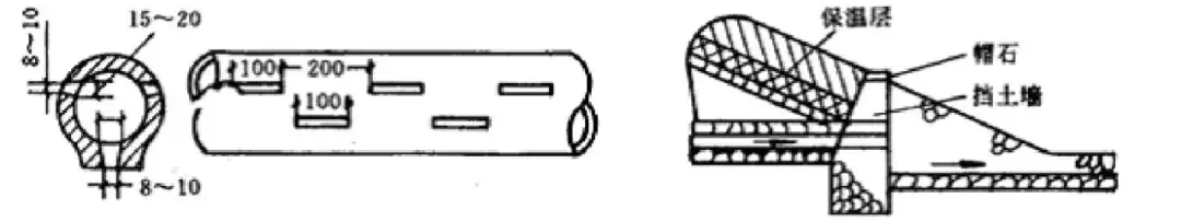 有管滲溝的滲水管是管壁帶有滲水孔的陶管或混凝土管,如圖(a)所示,此圖適用于流程較長,流量較大的情況。