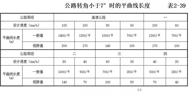 當道路轉角小于7°時,為防止駕駛員在視覺上產生急彎錯覺,而導致操縱失誤,應設較長的平曲線