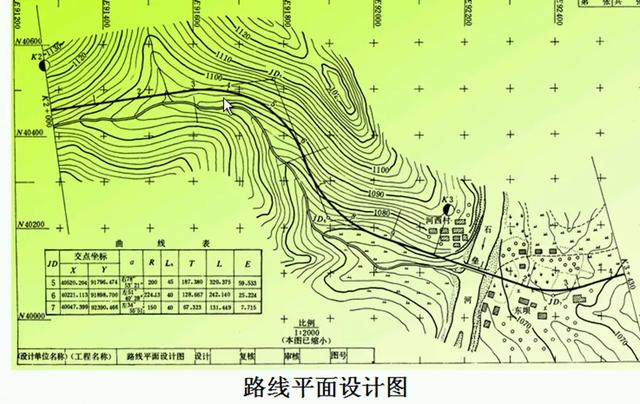 3、根據直線、曲線、轉角一覽表,按比例繪制道路中線圖。